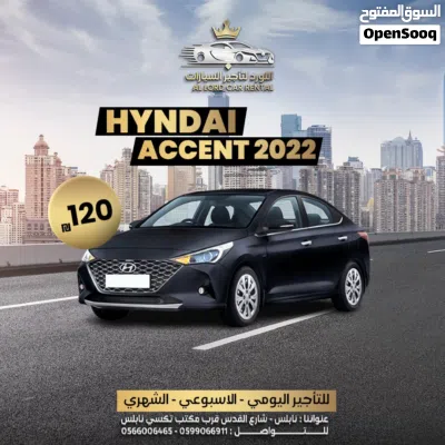هونداي أكسنت 2022 ب 120 شيكل للايجار اليومي