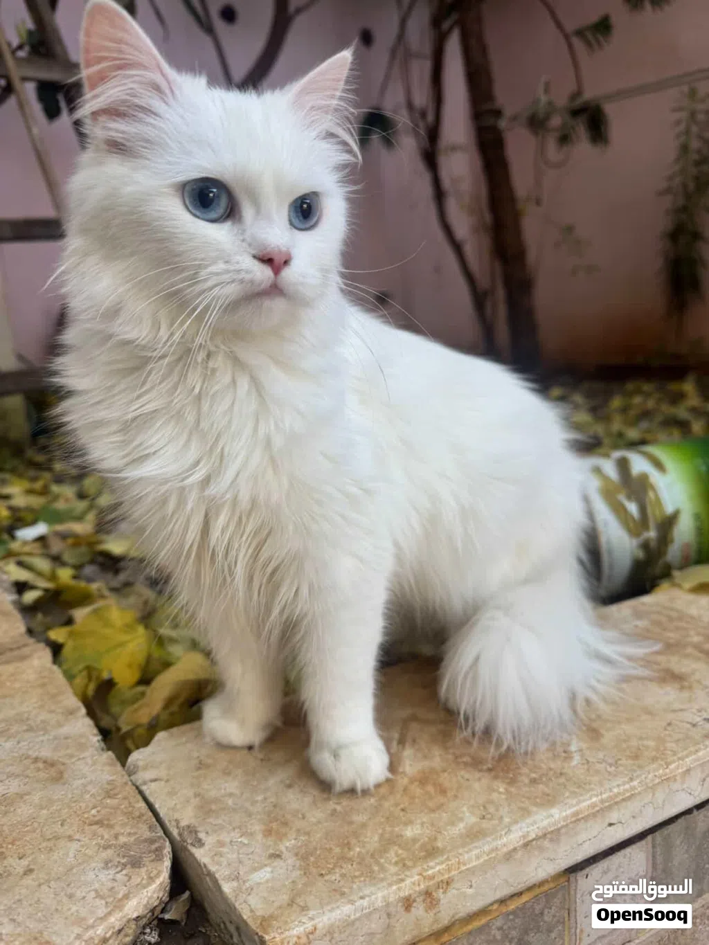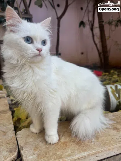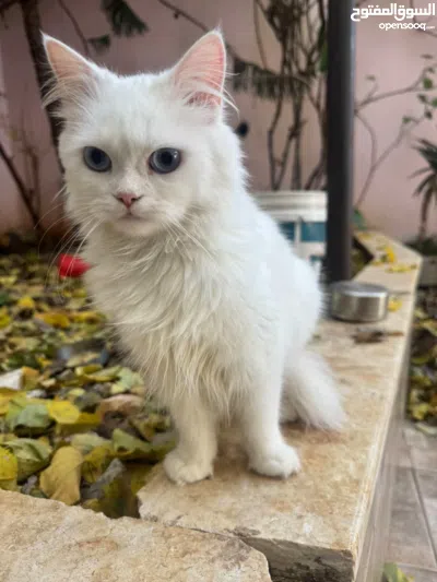 قطة للبيع لون ابيض مميز وعيون ازرق