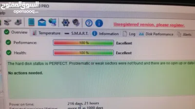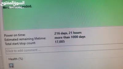 الفحص: تم فحص الهارد وصحته 100% (Health 100%) على برنامج Hard Disk Sentinel، يعني القطعة شغالة كأنها جديدة وبدون أي مشاكل.