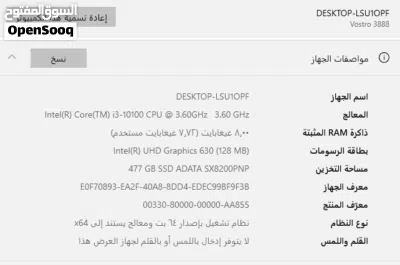 صندوق كمبيوتر جيل عاشر من شركه ديل للبيع الصندوق فقط بمعالج core i3 10100 الجهاز من الأجيال الجديده