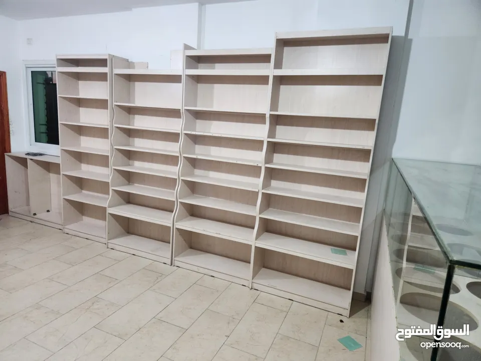 ديكور محمص شبه جديد مع رفوف وباترينه 2 متر وكراسي مكتب كلف تفصيل 15 الف شيكل البيع بسبب السفر بسعر حرق فقط 5000 شيكل