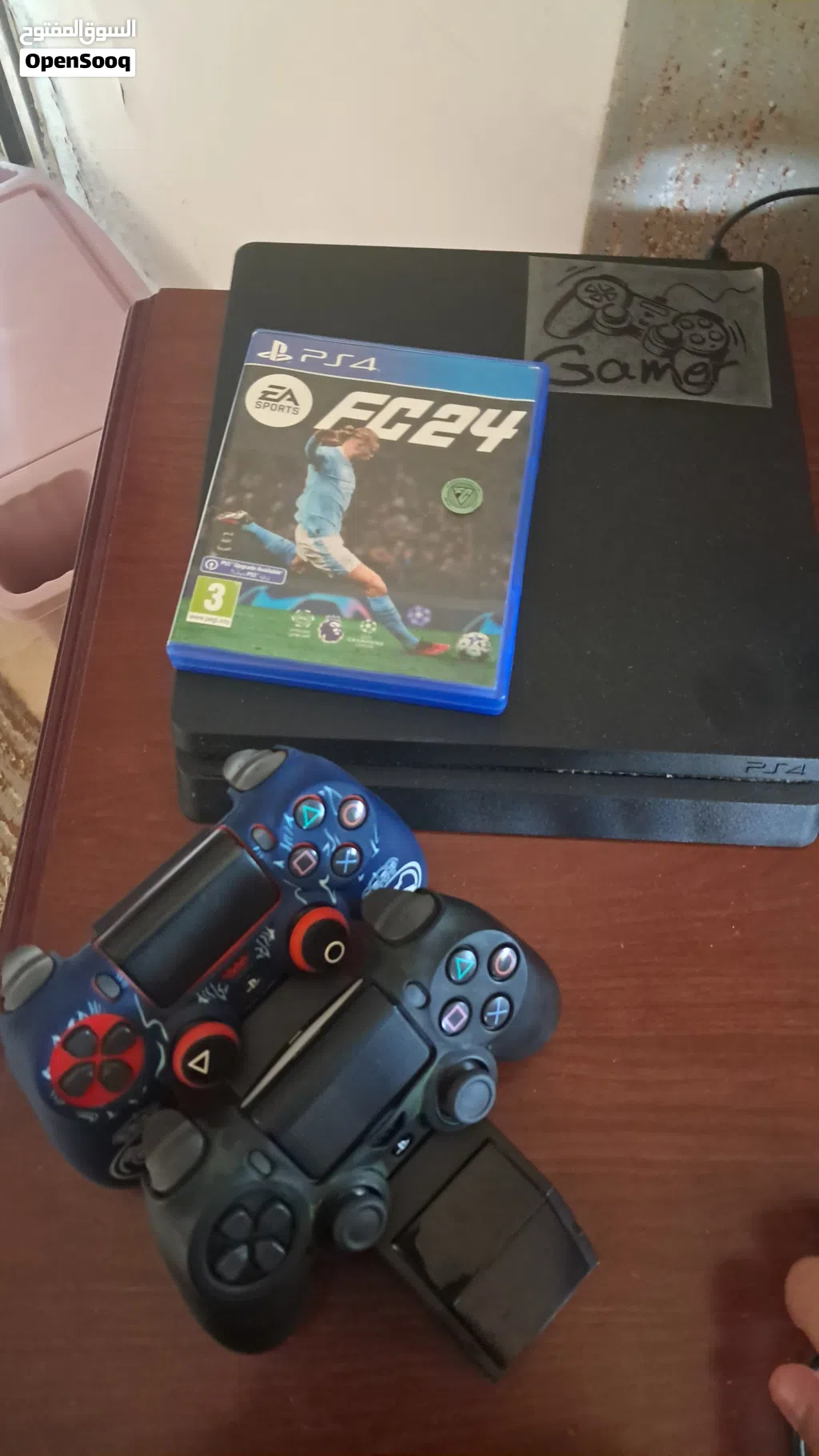 بلايستيشن 4 سلم استعمال 2 شهر مع 2 ايد ودسك اف سي 24