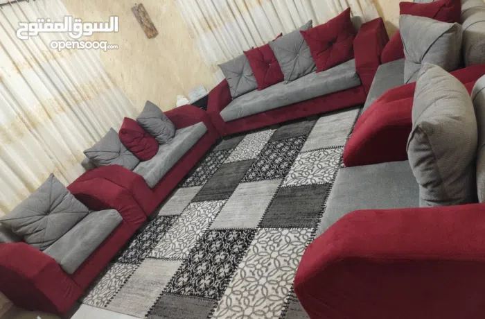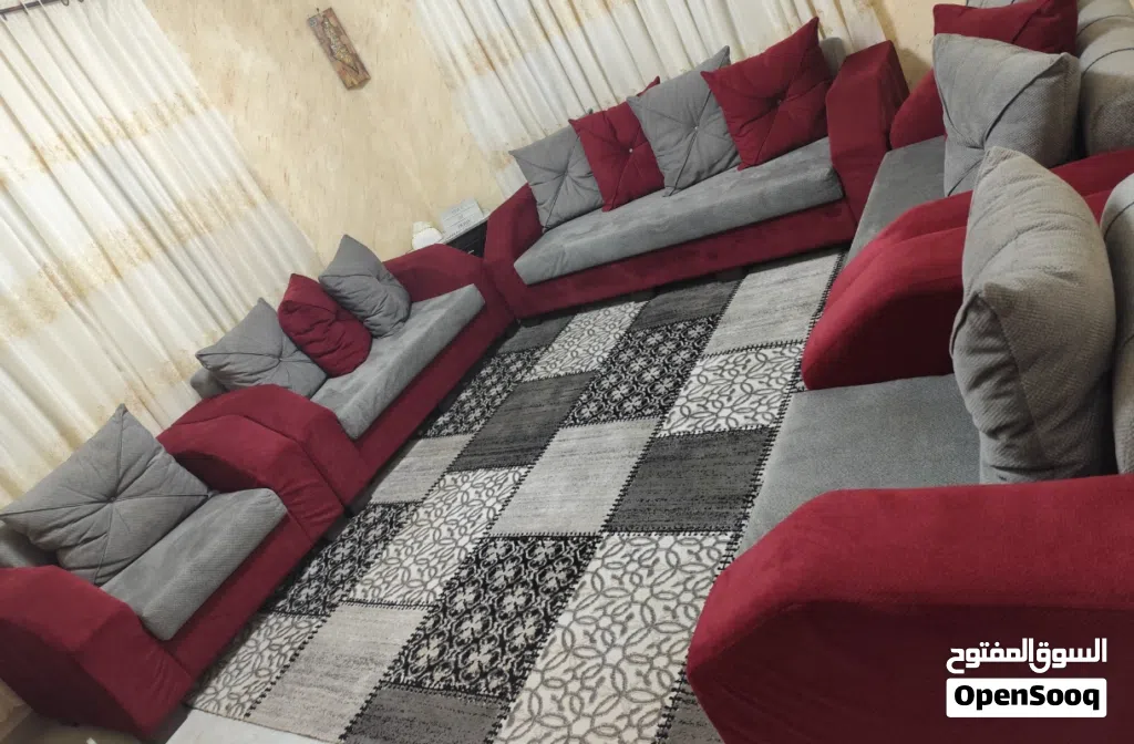 كنب تفصيل شبه جديد 9 مقاعد خمري وسكني