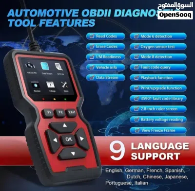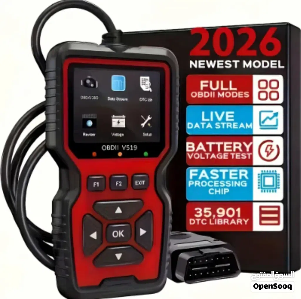 أحدث جهاز فحص السيارات OBD II لعام 2026 يحدد أخطاء التشخيص، وتدفق البيانات في الوقت الفعلي، وكشف رموز الأخطاء، متوافق مع جميع مركبات منذ عام 1996، لا يتطلب بطارية