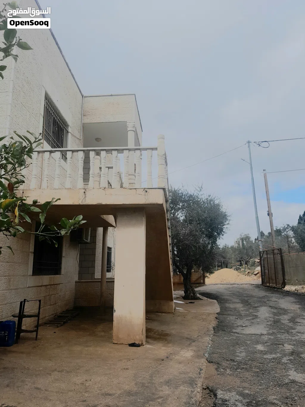 بيت مستقل من طابقين مبني من حجر أبيض