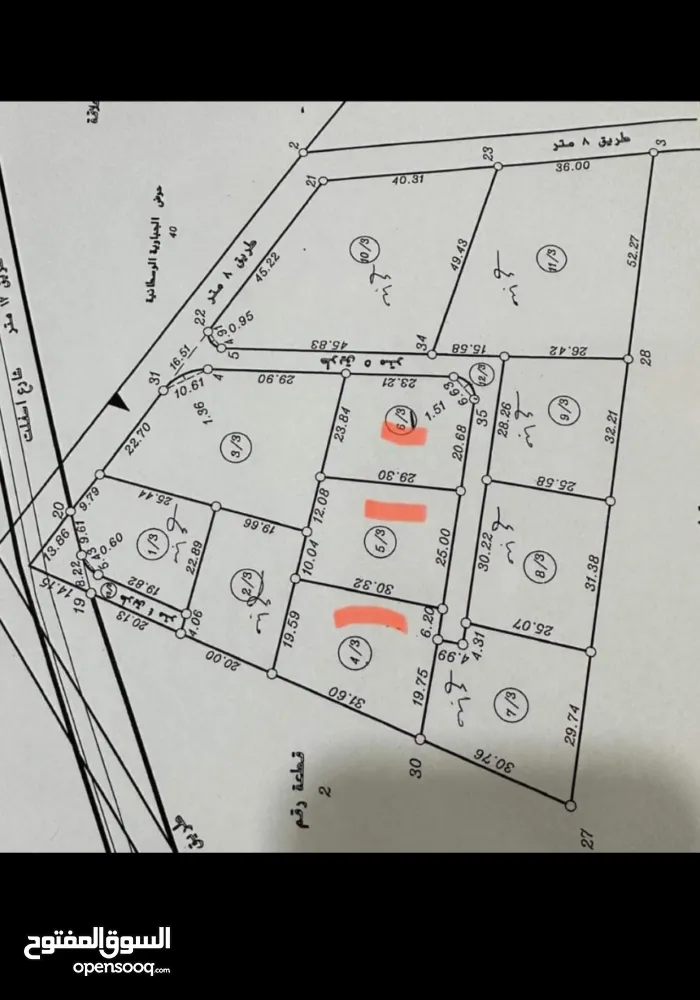 ارض منطقه A صالحه للبناء منطقه هادئه جدا تقع في منطقه فلل ويوجد خط ماء وكهرباء قريب منها القطعه المعروضه للبيع رقم 3\7