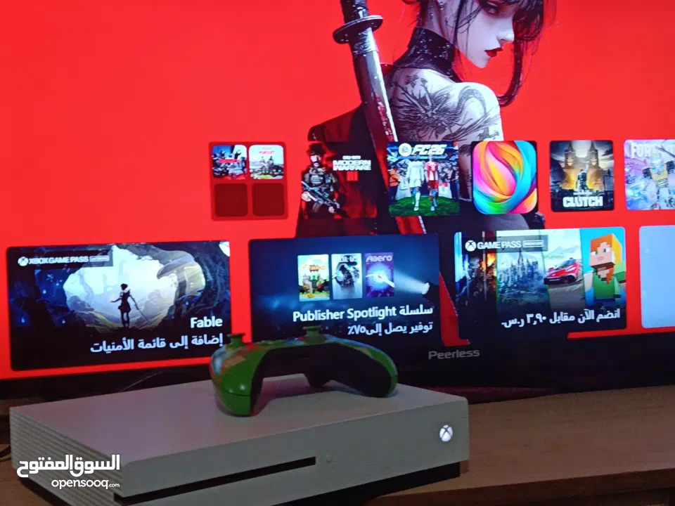 xbox one s مستعمل بحالة ممتازة 512جيجا مع ايد نسخة ماين كرافت مع اشتراك جيم باس شهر