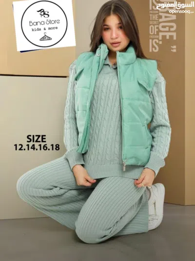 الطقم عبارة عن (بلوفر تريكو + بنطلون تريكو + فيست نفخ) لضمان الدفء التام والأناقة الكاملة!
