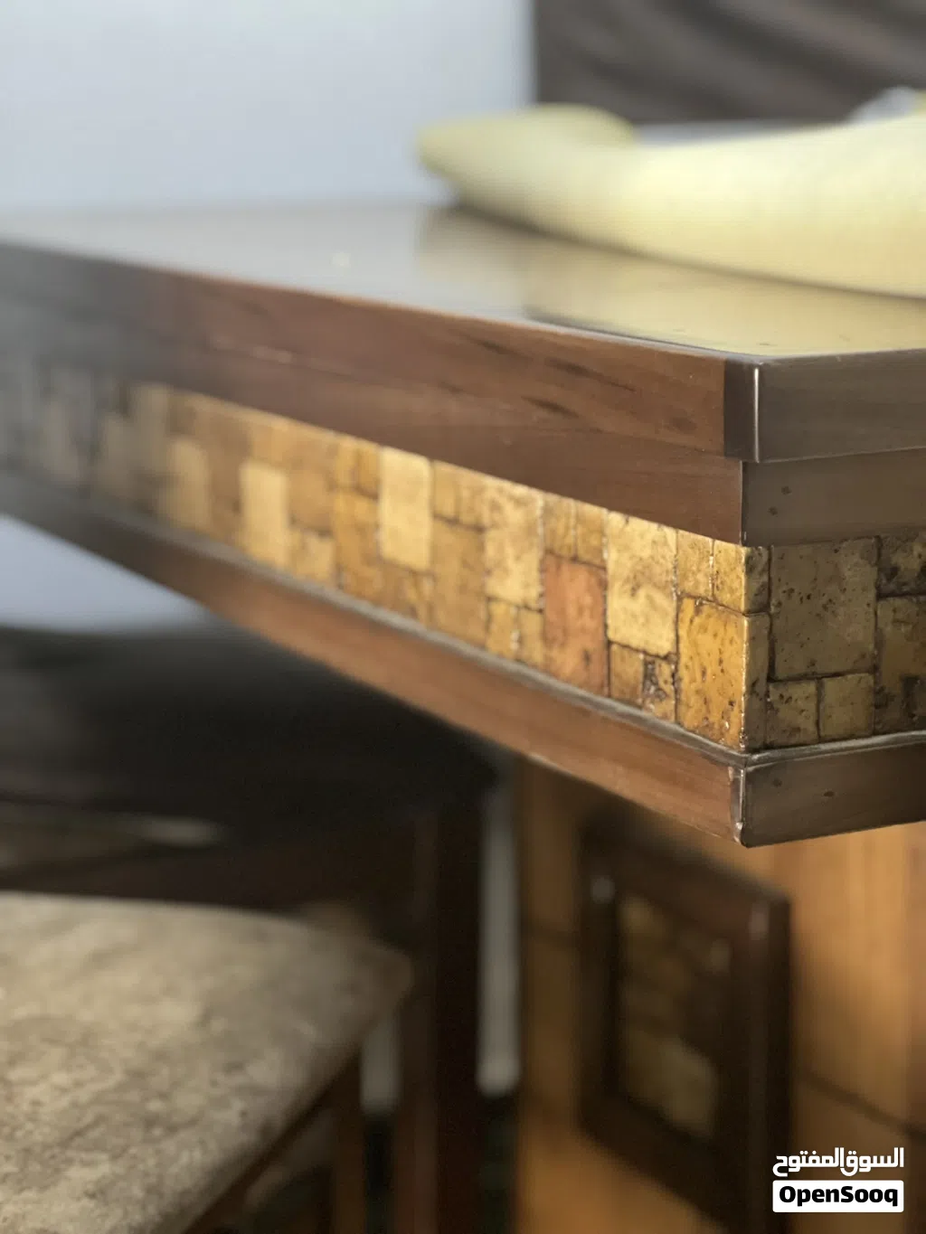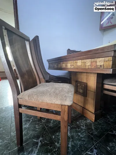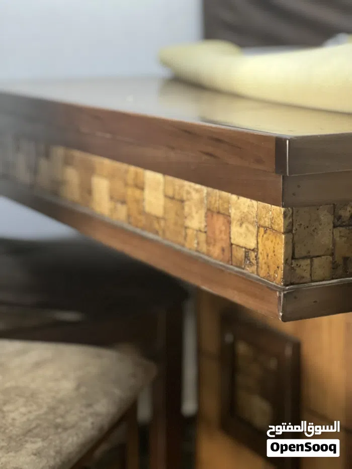 طاولة سفرة بحدث موديل "خشب زان" مطرزة بالحجر الصخري بمظهره الجميل والذي معطي الرقي والفخامة في المنزل الطاولة مستعملة استعمال خفيف وكلن هي جديدة ومكفولة لايوجد بها اي خدش ولا اي اثر جديدة مستعملة استعمال اقل من سنة