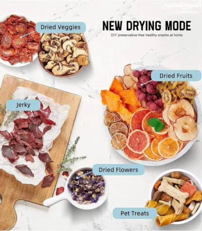 تحكم دقيق في الحرارة: مزود بمفتاح لضبط درجة الحرارة بما يتناسب مع نوع الصنف المراد تجفيفه، لضمان أفضل النتائج دائماً.