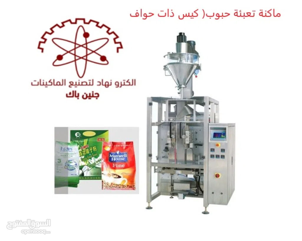 ماكنة تعبئة حبوب اكياس ذات حواف بالإضافة إلى العديد من ماكنات التعبئة والتغليف والاغلاق .