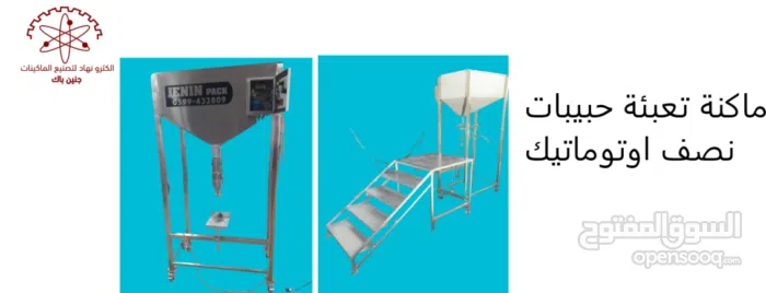 ماكنة تعبئة حبيبات نصف اوتوماتيك لتعبئة كافة انواع الحبيبات، بالاضافة الى العديد من ماكنات التصنيع الغذائي