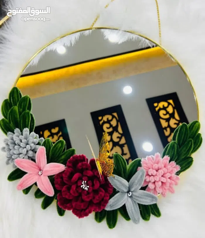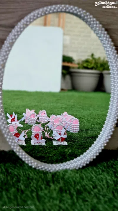مرايا ديكور صنعت خصيصا لك سيدتي مصنوعة بكل حب من عيدان المخمل وحبات اللولو
