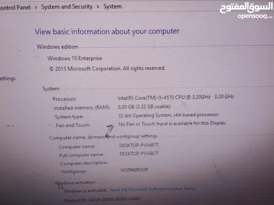كمبيوتر لبيع ماركة لينوفو الجيل الرابع اي 5 ورام 8 جيجا وهاردسك 500 جيجا