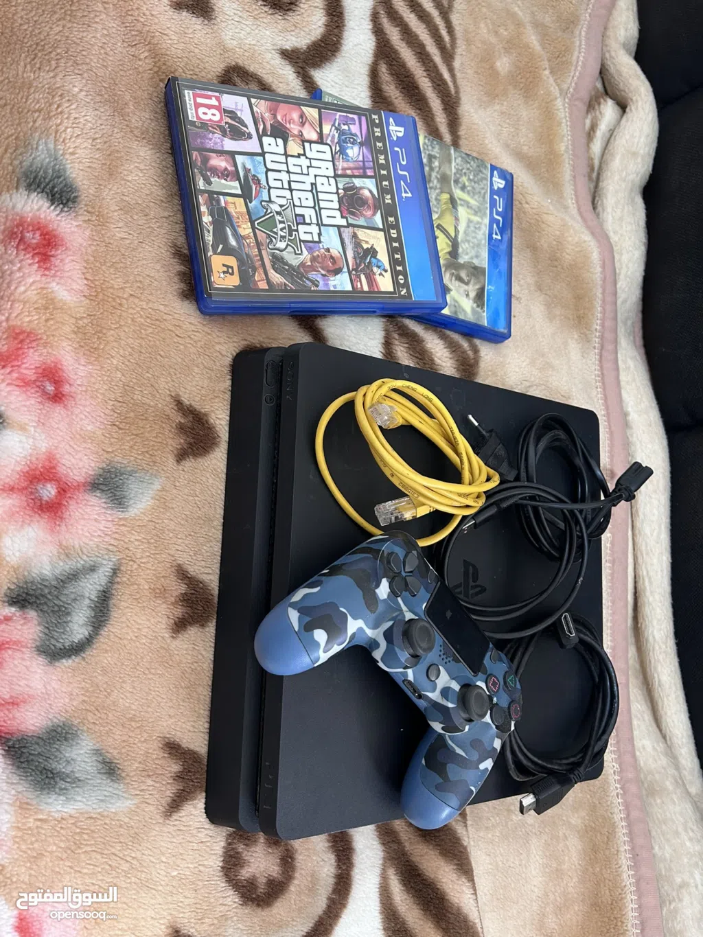 بلاستيشن 4 مع يد تحكم مع جميع اسلاكها مع اقراص عدد 2 الجهاز بحالة ممتازة