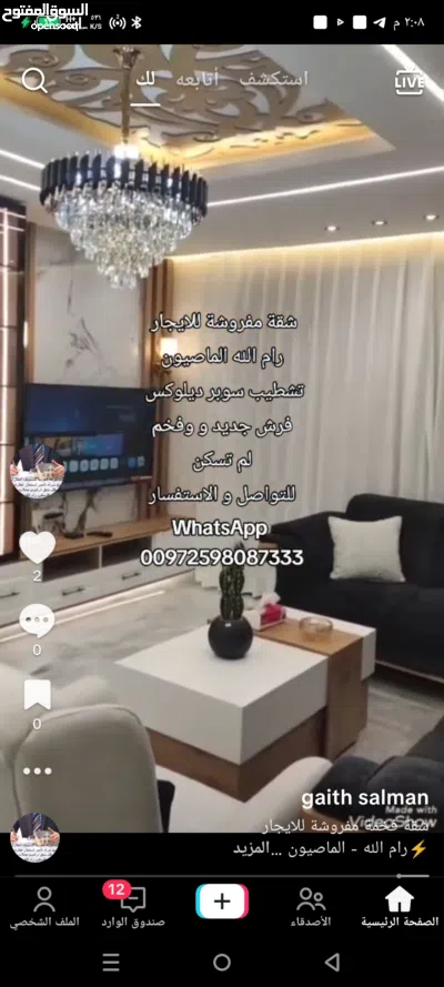 شقة فخمة مفروشه للايجار لم تسكن