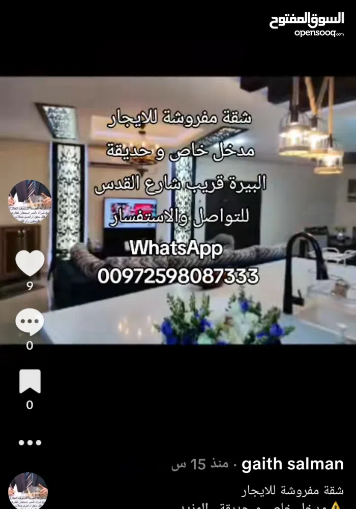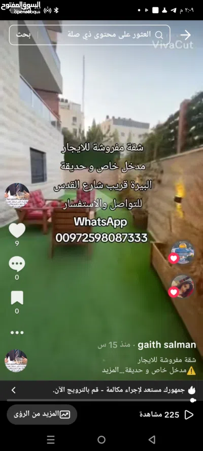 شقة فخمه مفروشة للايجار مدخل خاص وحديقة