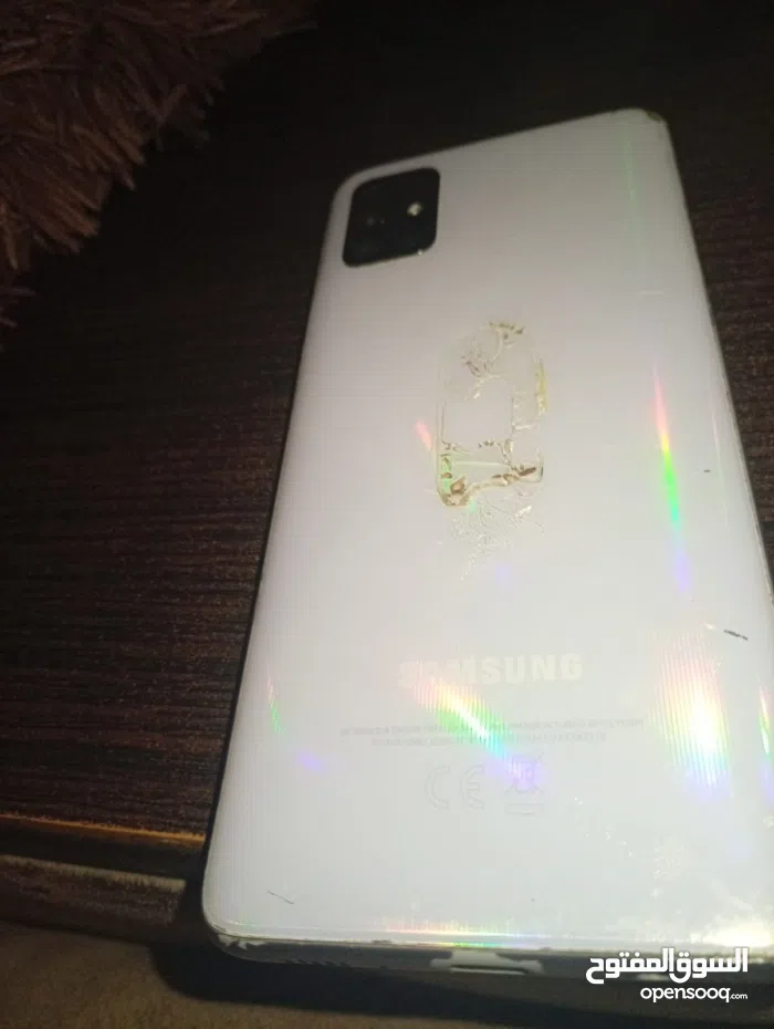 هاتف سامسونج مستعمل بحالة جيدة مساحة التخزين 128، لون ابيض شاشة مغيره صيني ومدخل شحن