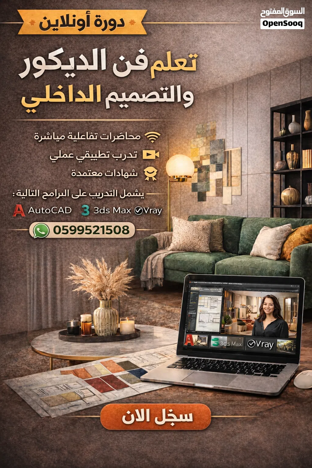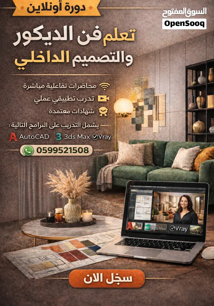 حول الاهتمام الى حقيقة، والشغف الى ابداع، والذوق الرفيع الى عالم وواقع جميل عن طريق التحاقك بدورة التصميم الداخلي والديكور عن بعد عبر برنامج zoom.