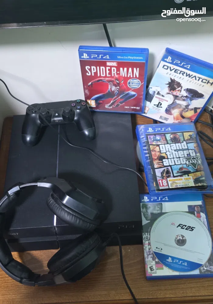 بلايستيشن 4 معه ايد اصلية وسماعة اصلية معه 5 العاب ب500 شيكل