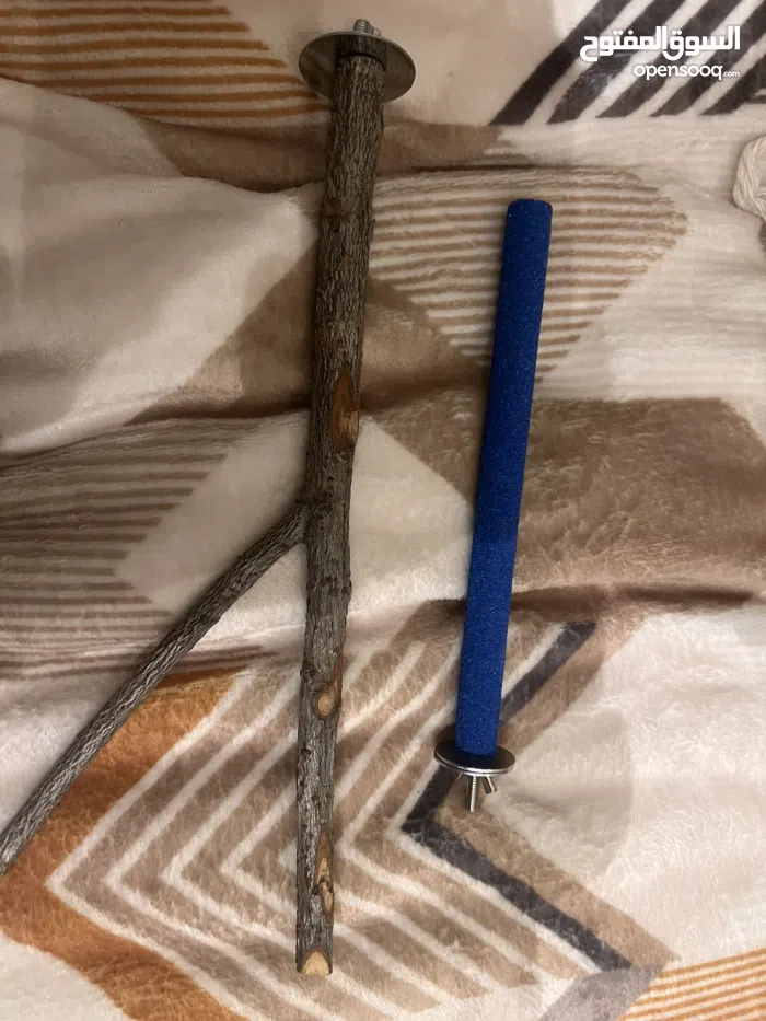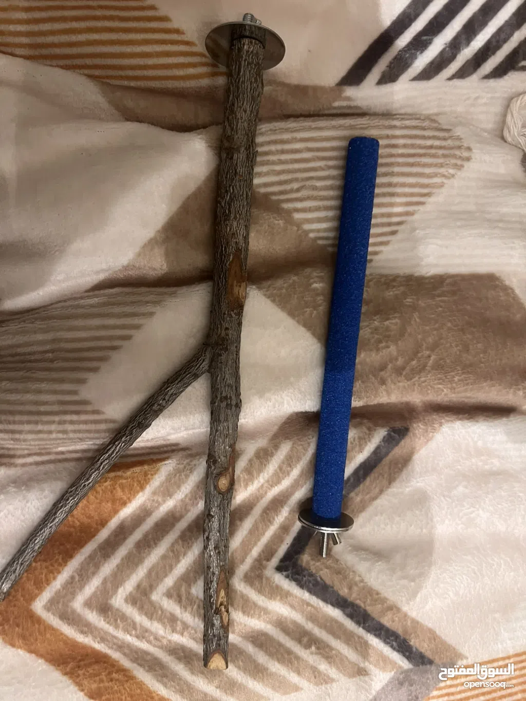 يوجد عودان واحد للوقوف مصنوع من خشب اصلي و اخر لقص المنقار و الارجل