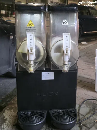 (7) ماكينة سلاش احترافية بخزانين، ماركة HOSK ، بحالة ممتازة وشغالة 100%. خزانین شفافين سعة كبيرة بتقدر تشغل نكهتين بنفس الوقت).