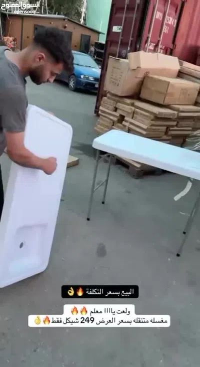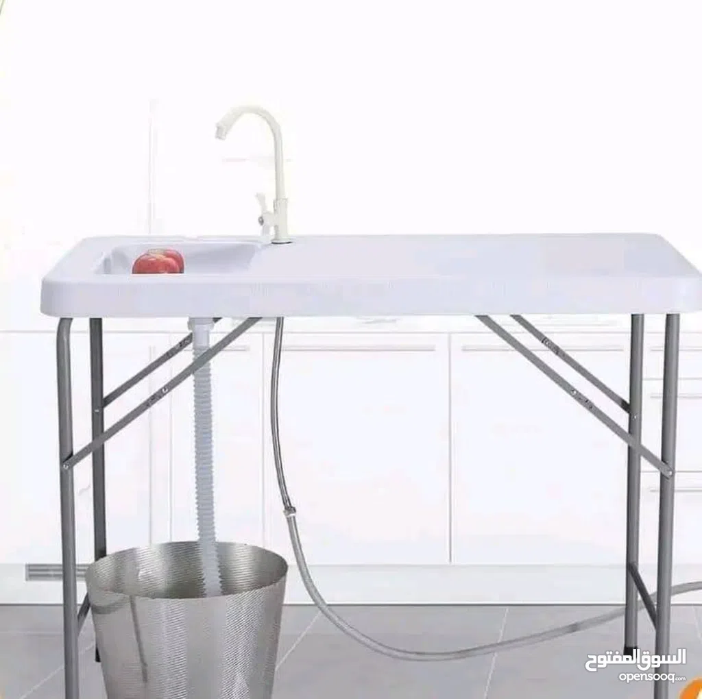 نقدم لك الطاولة المتنقلة مع حوض مدمج، الرفيق المثالي لكل مناسباتك الخارجية!