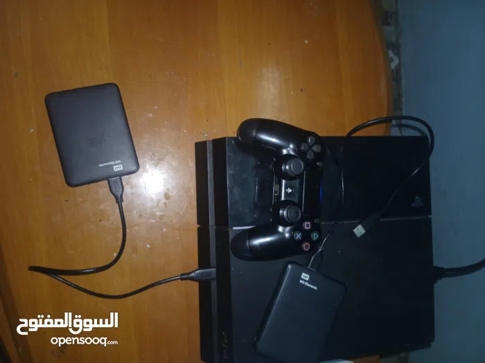 جهاز بلاي ستيشن play station 4 مهكر مقرصن وعليه 53 لعبة من اجمل الالعاب واكثرها شهرتا و طلبا جديد مع كل اسلاكه وقطعه واثنان هارديسك خارجيان