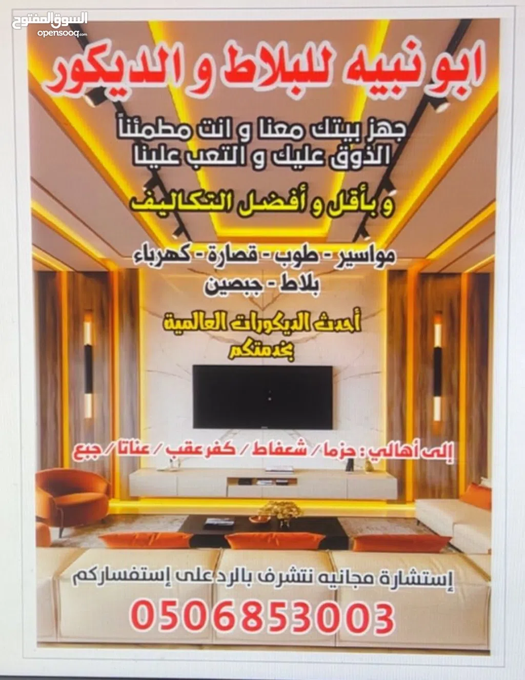 مقاولات عامه كافه اعمال البناء والتشطيب والصيانه بسرعه واتقان في العمل