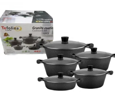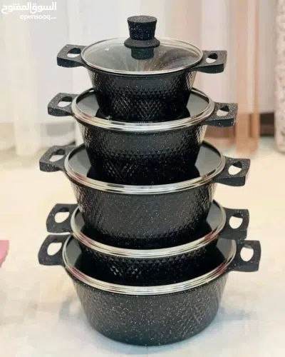 طقم متكامل: 10 قطع بأحجام مختلفة (قدور عميقة وقدر مسطح) لتلبية كل احتياجاتك في الطهي.