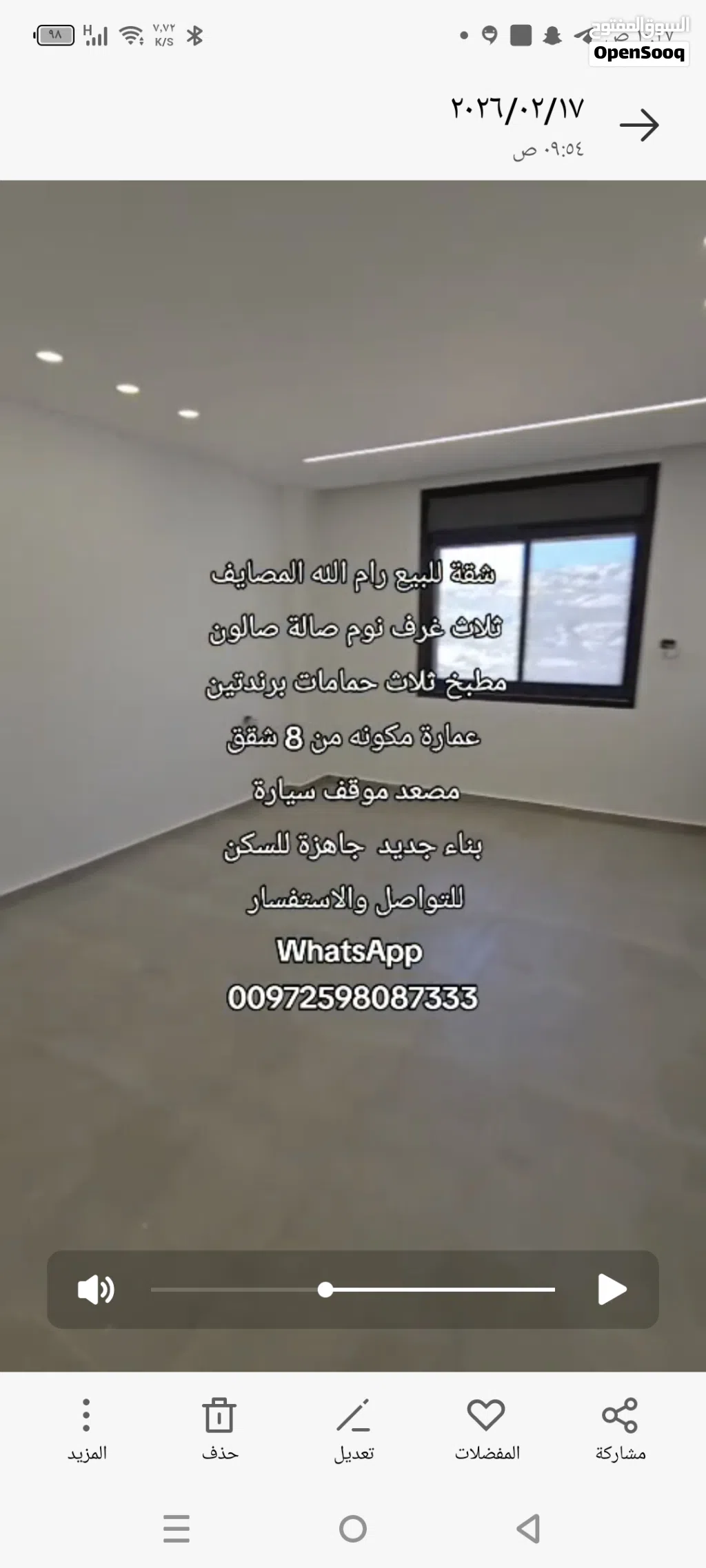متوفر فيديو كامل للشقة