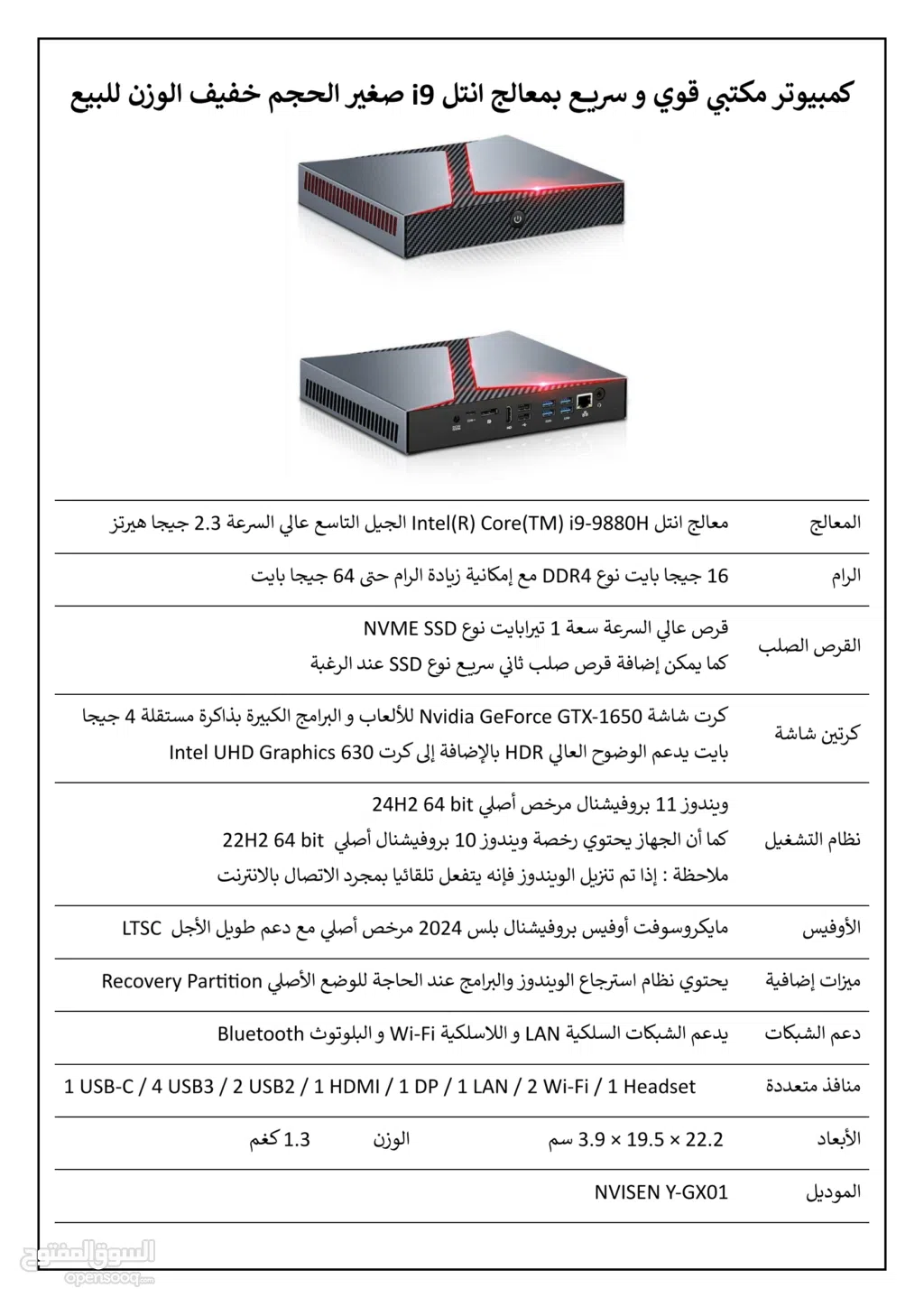 كمبيوتر مكتبي قوي و سريع بمعالج انتل i9 صغير الحجم خفيف الوزن للبيع - الموديل NVISEN Y-GX01
