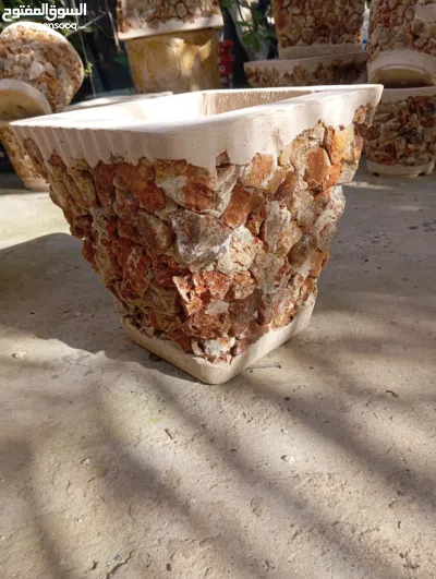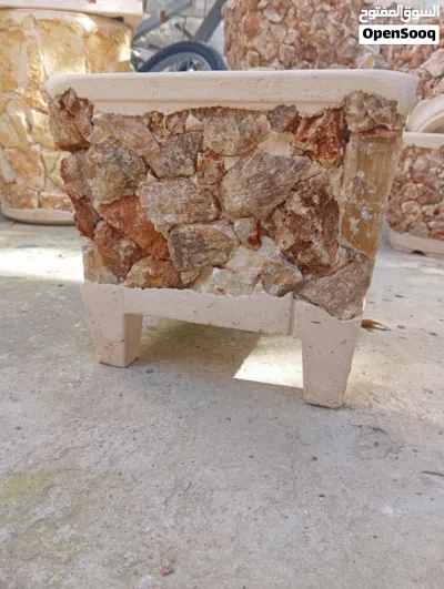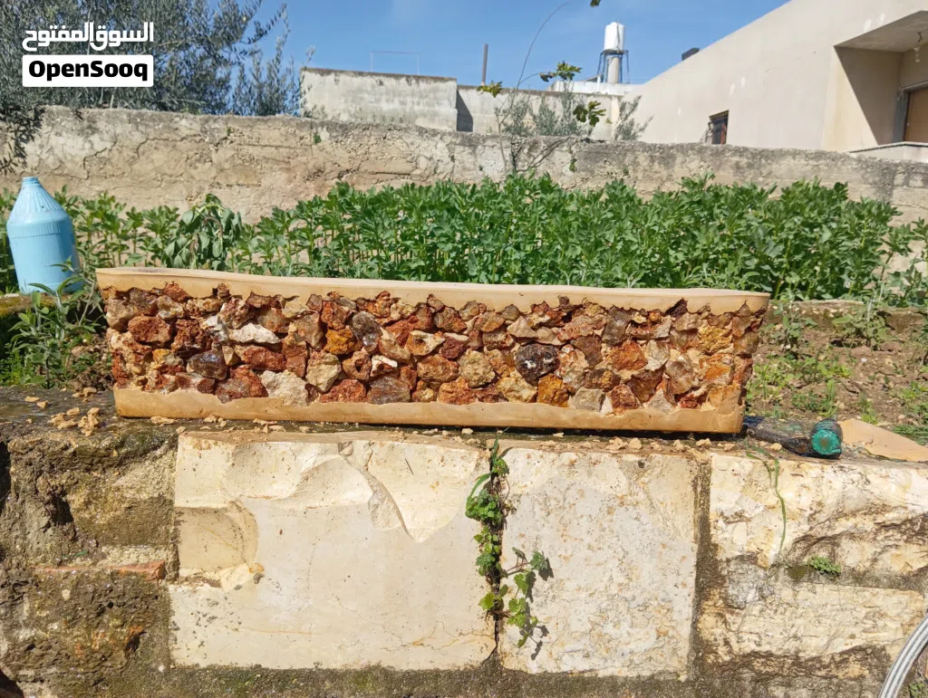 حوض زراعة قوي وثقيل، مصنوع من إسمنت مسلح وملبّس كوارتز طبيعي يعطي شكل فخم وتحمل عالي.