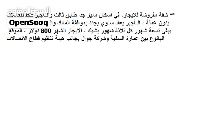 بدون عمولة والايجار 800 دولار شهريا