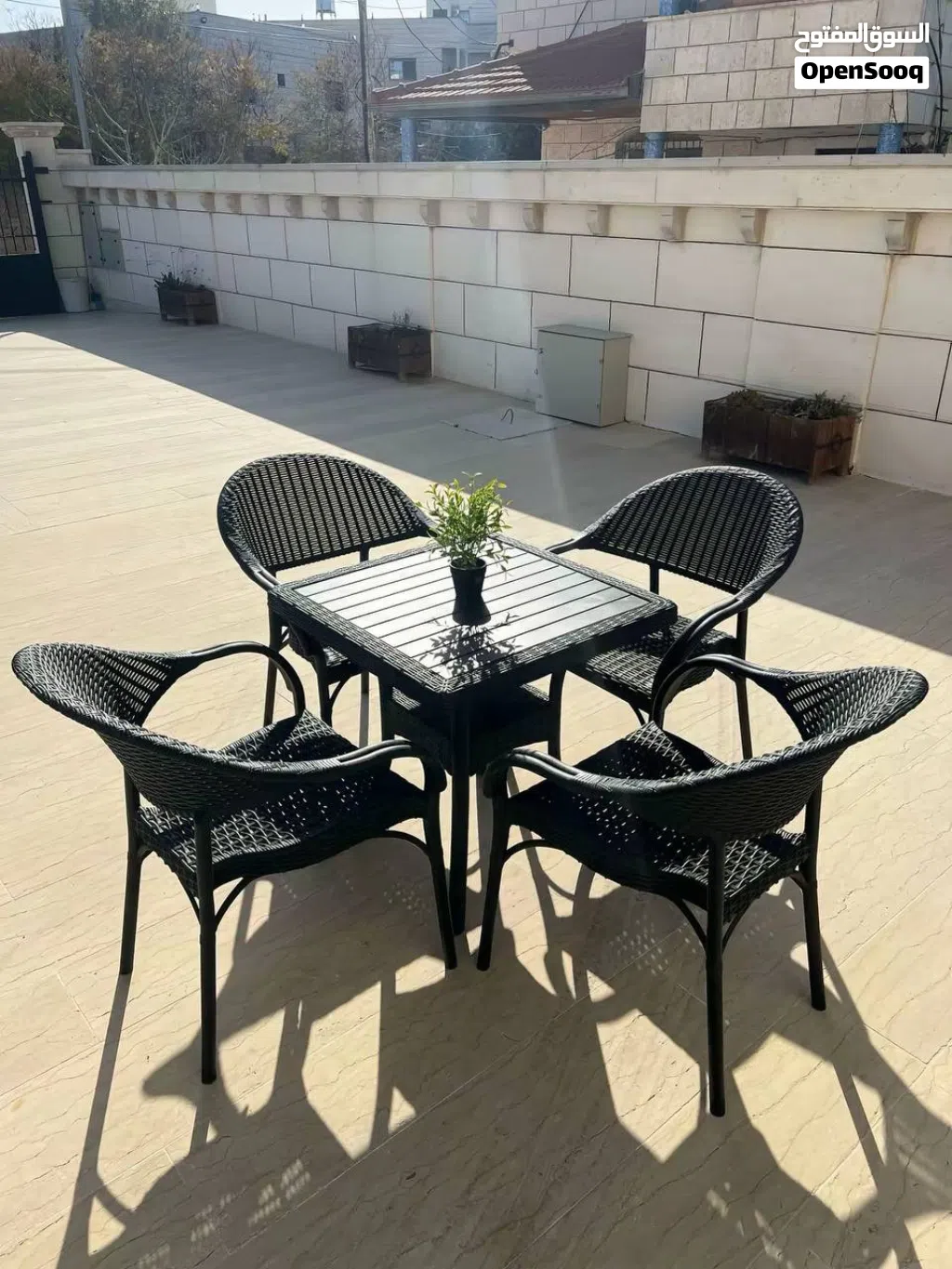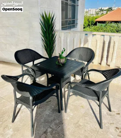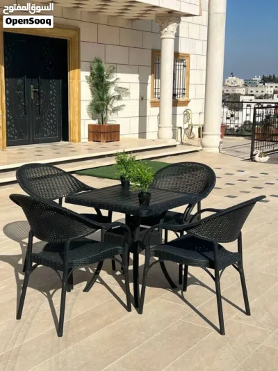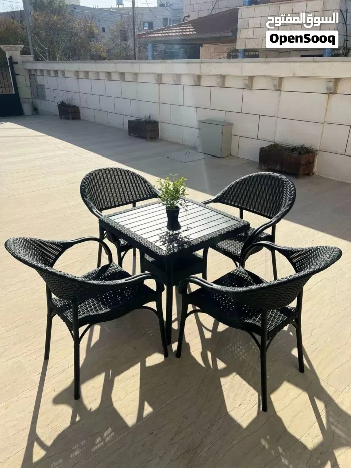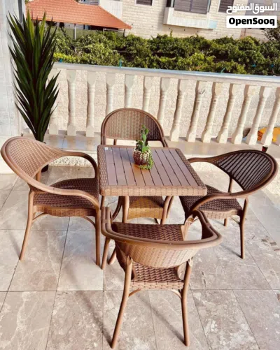 طقم الجلسات الخارجية من 4 كراسي وطاولة، لون عسلي، ولون اسود
