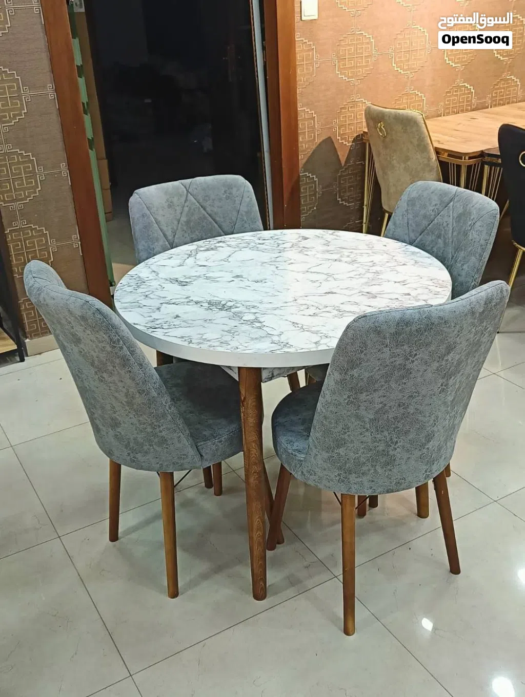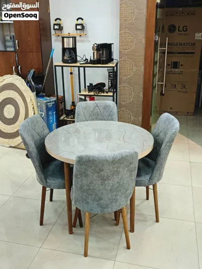 طاولة سفرة مع 4 كراسي دائرية الشكل