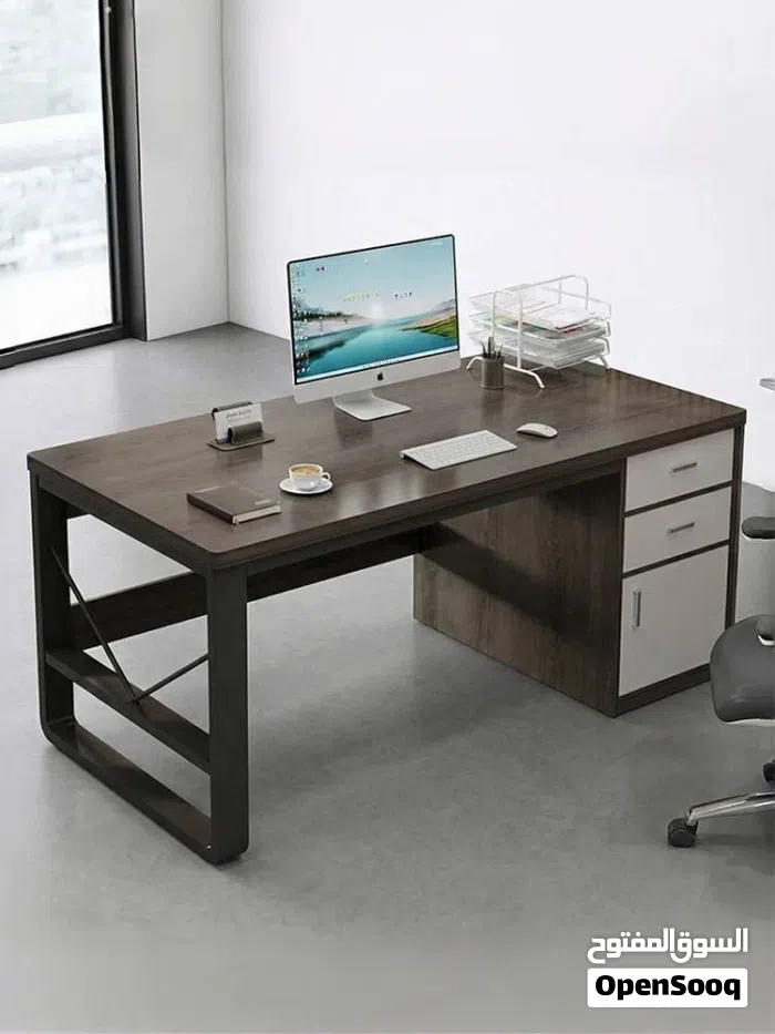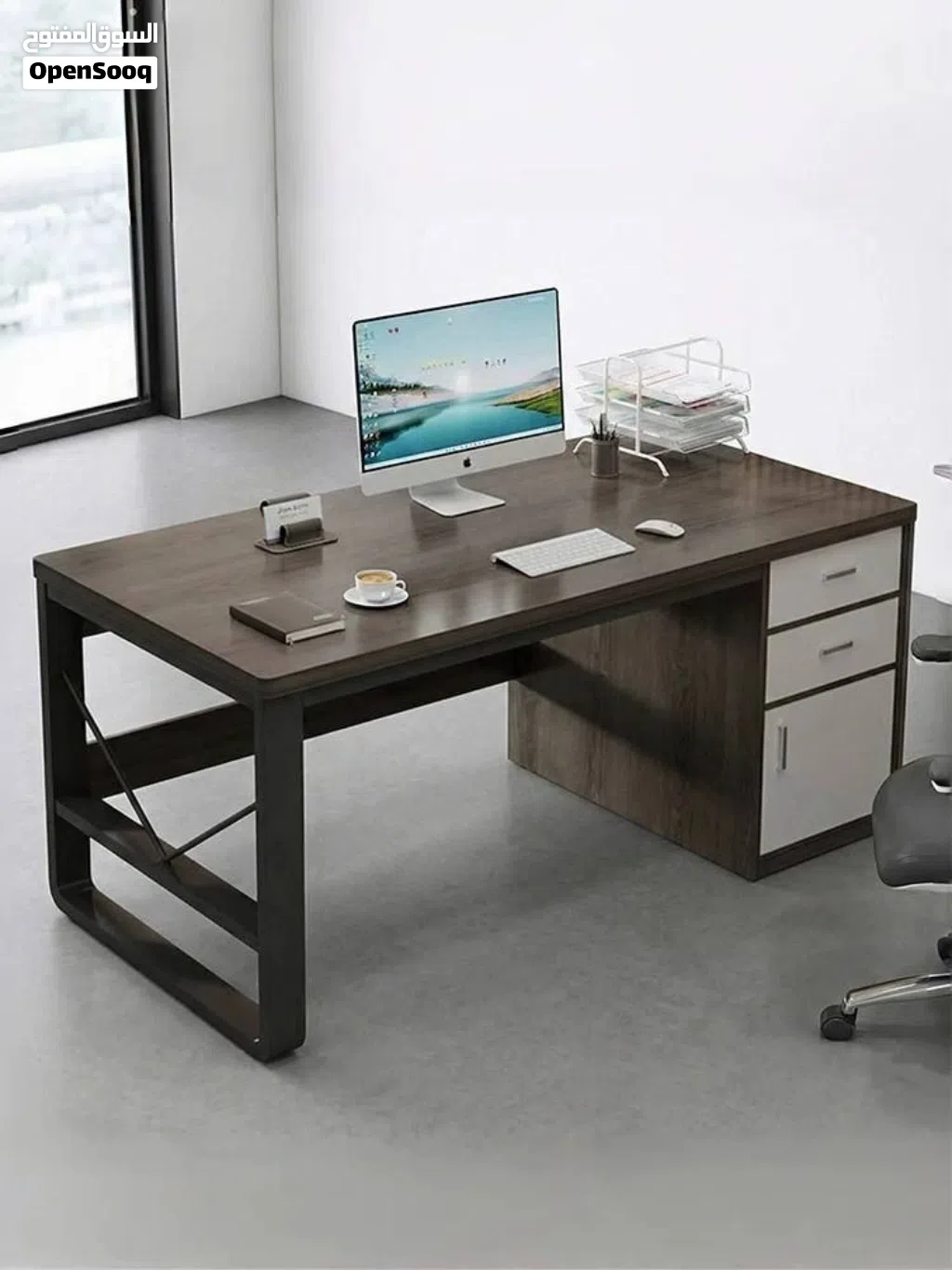 مكتب زاوية خشبي بتصميم عصري وعملي مكتب مثالي للعمل أو الدراسة، يجمع بين المساحة الواسعة والتصمي