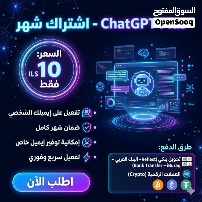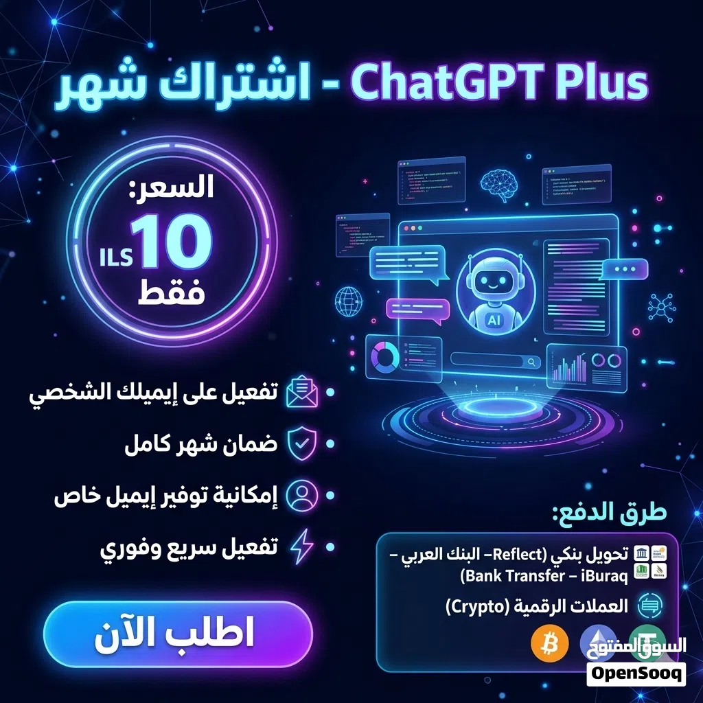احصل على اشتراك ChatGPT Plus لمدة شهر كامل مع تفعيل مباشر على إيميلك الشخصي لضمان الخصوصية وسهولة الاستخدام.
