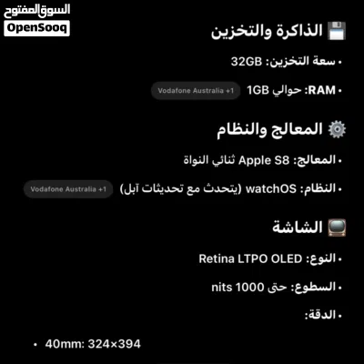 • النظام: watchOS (يتحدث مع تحديثات آبل)