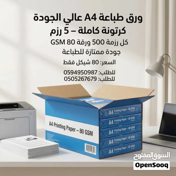 كرتونة كاملة 5 رزم كل رزمة 500 ورقة