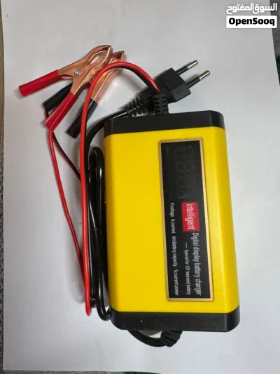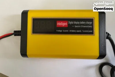شاحن بطارية عملي مع شاشة عرض لبيانات الشحن.