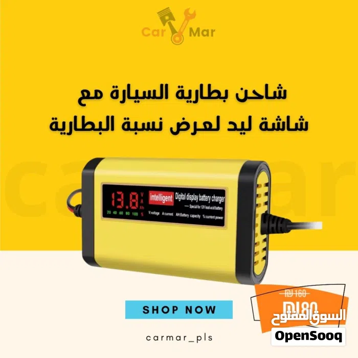 شاحن بطارية سيارة ذكي مع شاشة LED