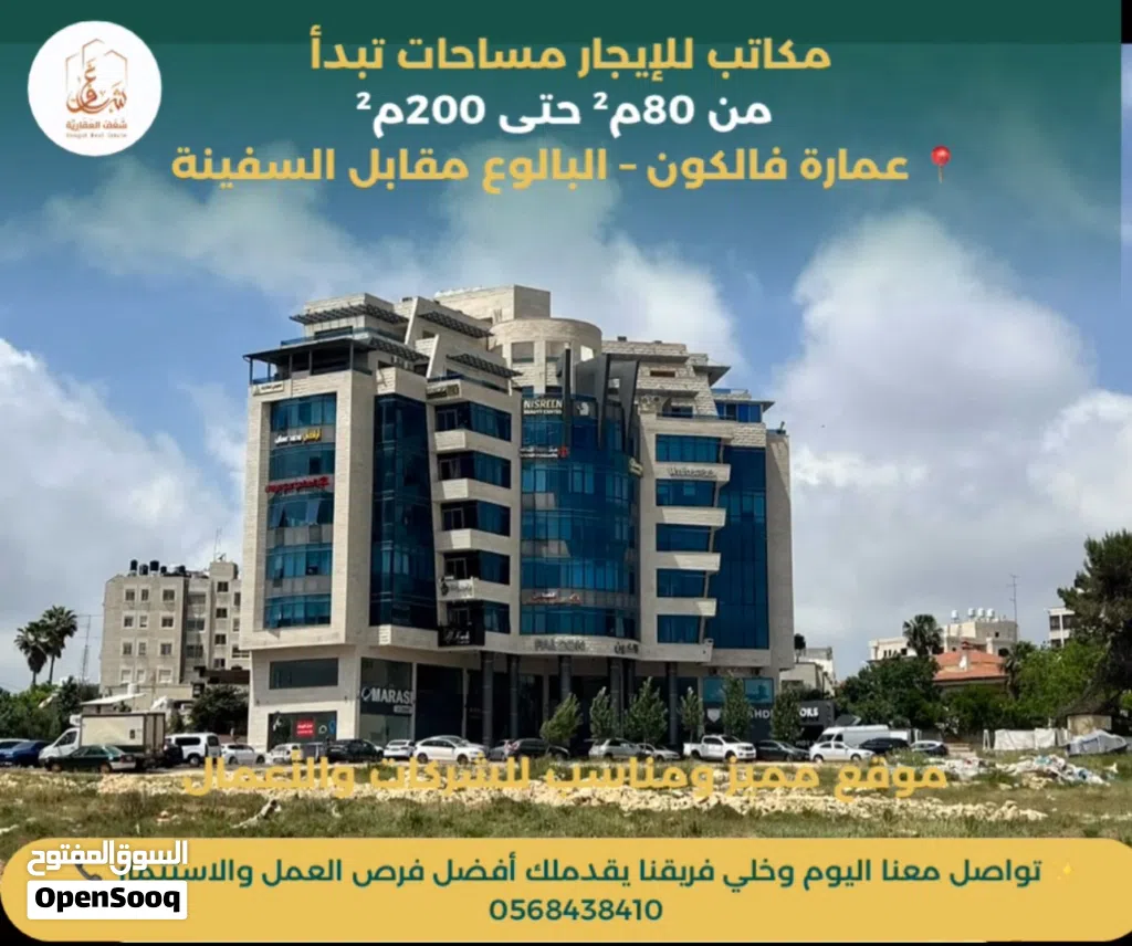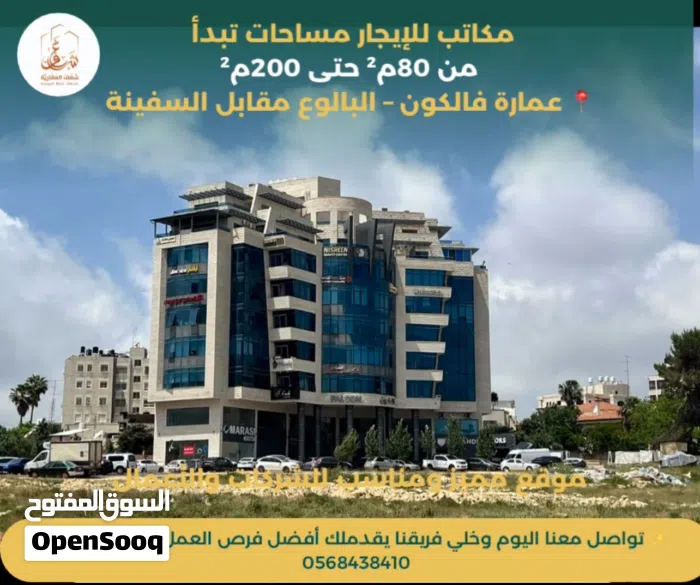 مكاتب للإيجار مساحات تبدأ من 80م2 حتى 200م عمارة فالكون – البالوع110 دولار المتر بالسنة