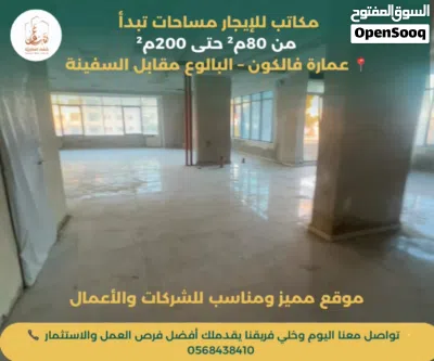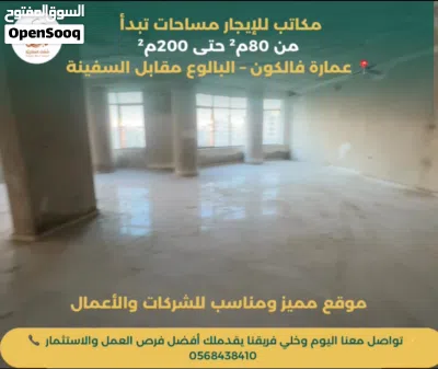 مكاتب للإيجار مساحات تبدأ من 80م2 حتى 200م2