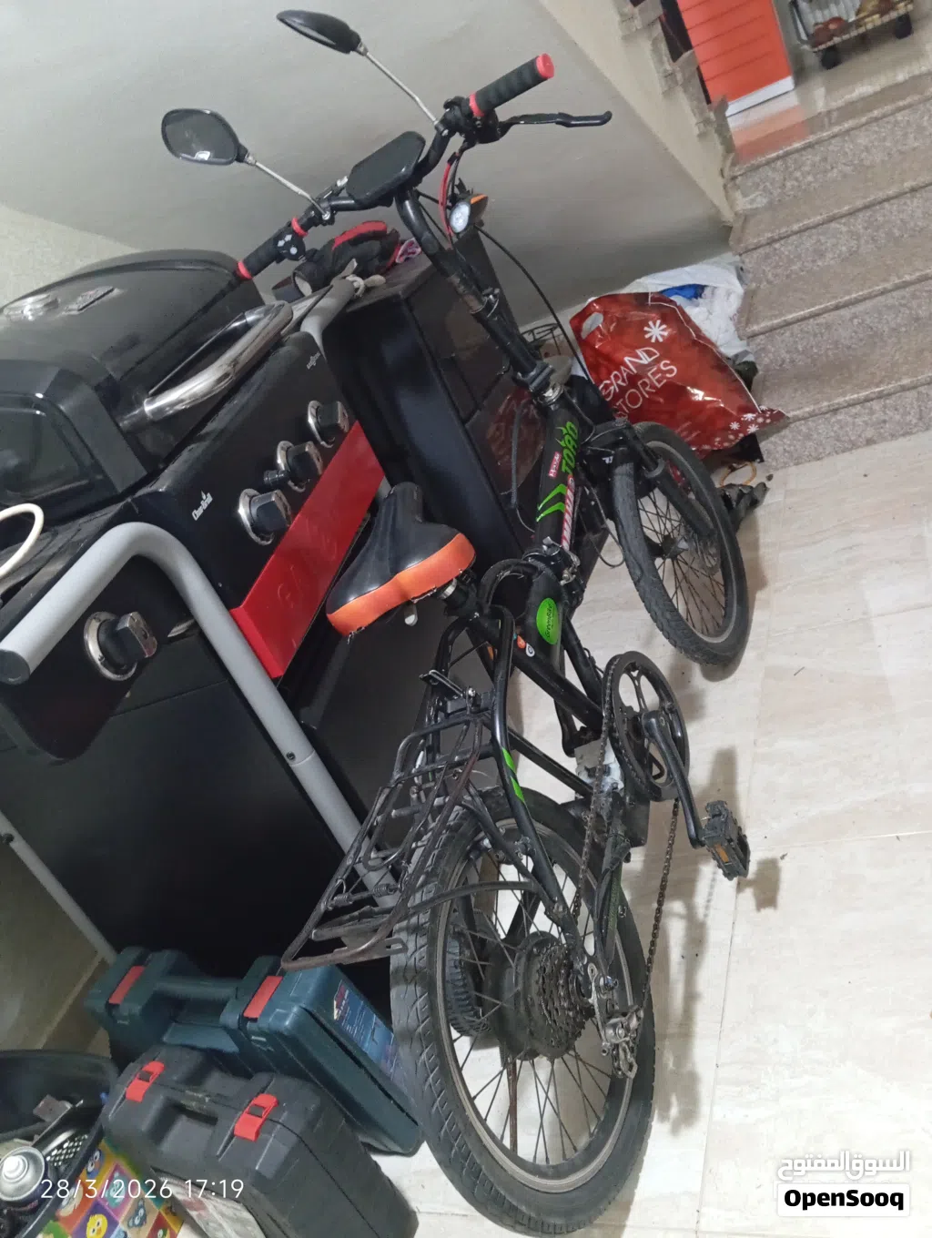 يوجد بسكليت كهرباء 36 فولت 10 امبير طبعا البسكليت ما بمشي المشكله في انه كهرباء في سلك مفصول