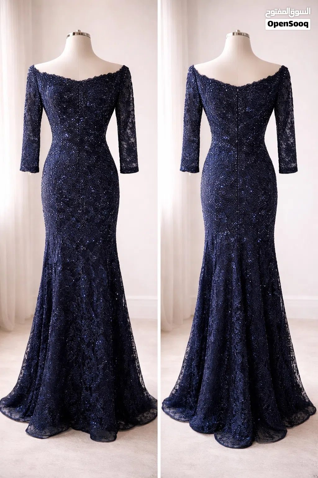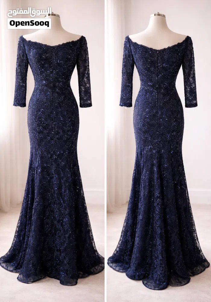فستان سهرة طويل مستعمل لبسه واحده فقط شبه جديد لون ازرق كما بالصوره نمره 40