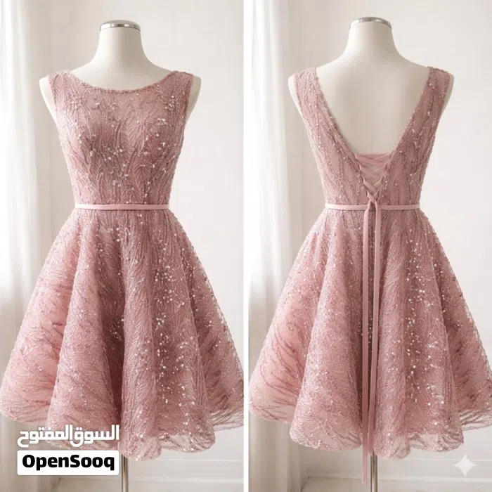 فستان قصير لبسه واحده فقط شبه جديد للايجار لون زهري بارد كما بالصوره