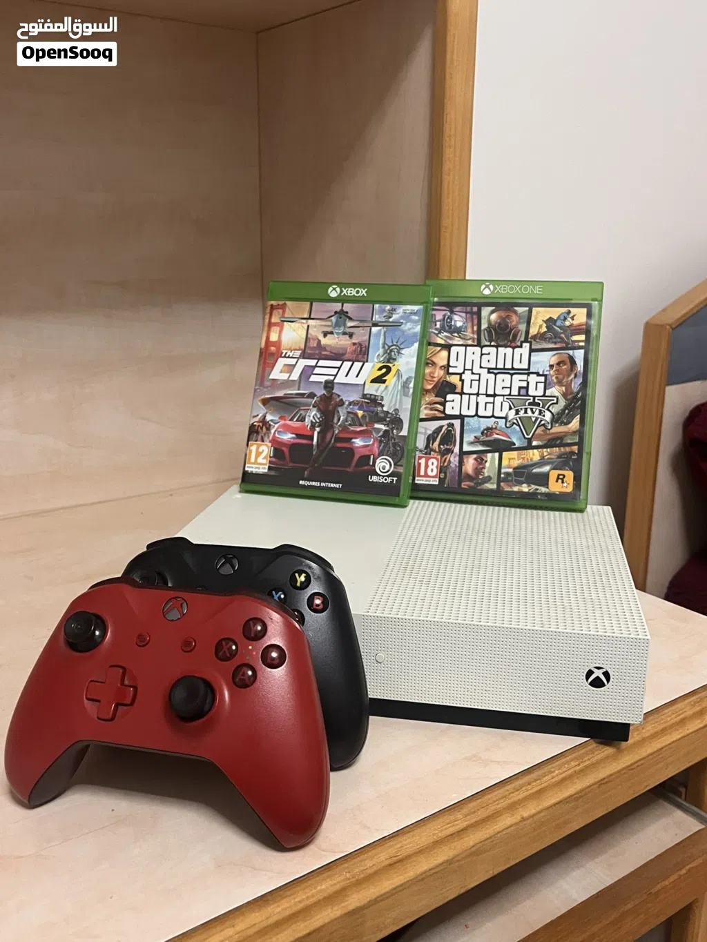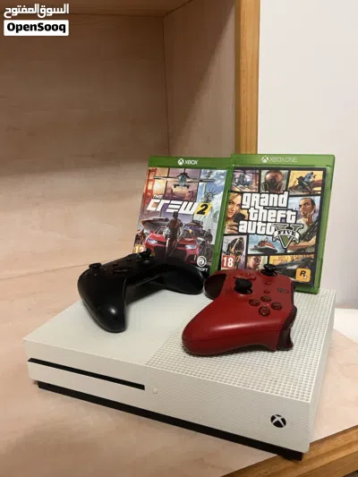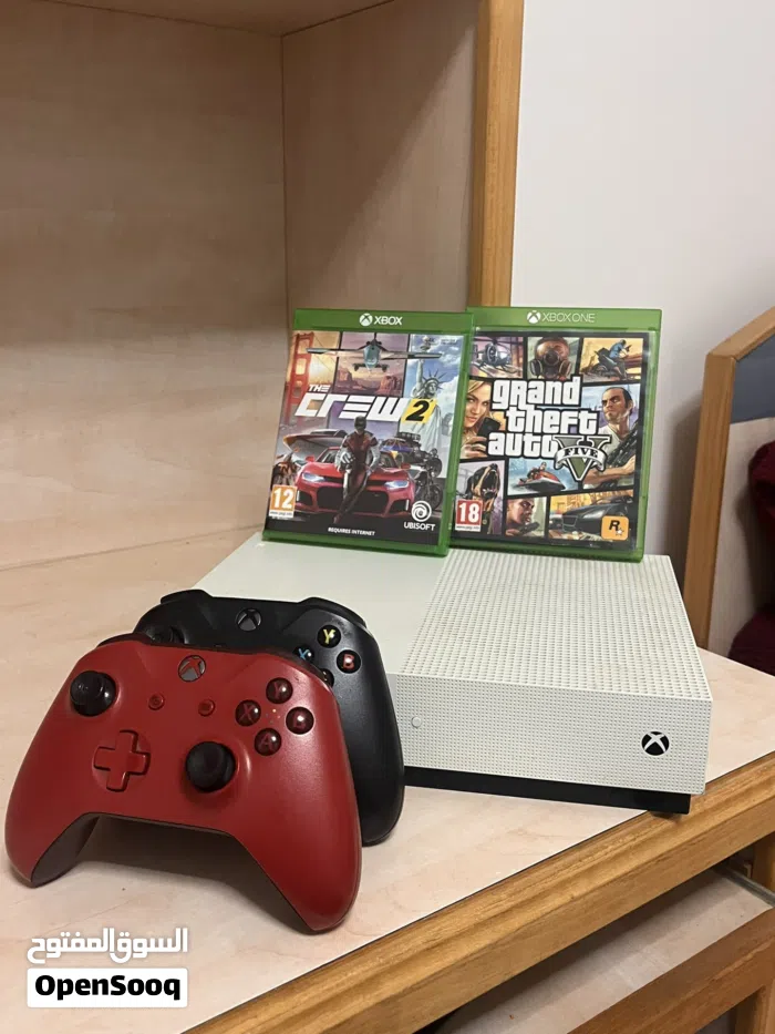 Xbox one s للبيع مع يدتين و CD gta وCD the crew 2 مع جميع الأسلاك