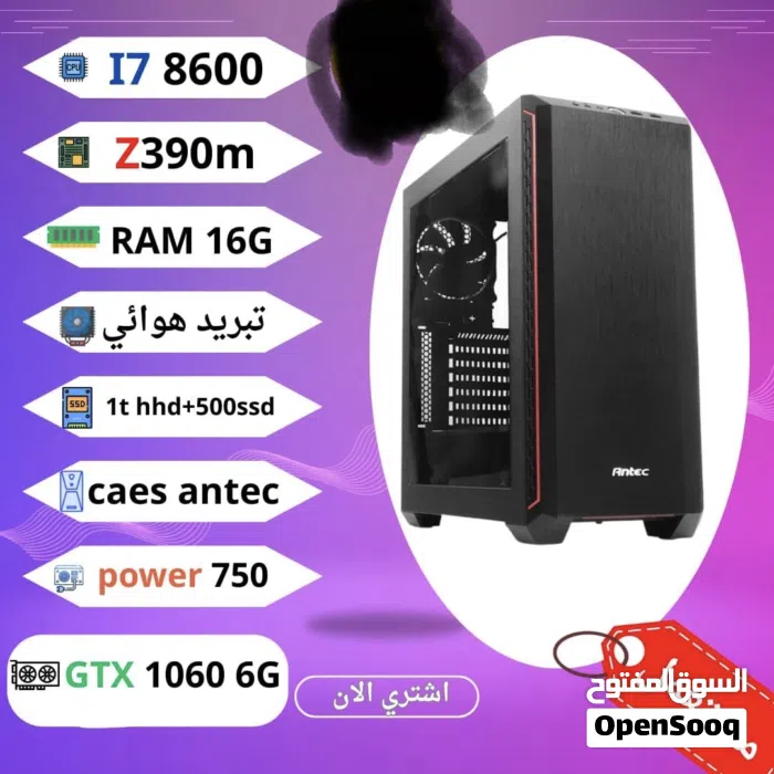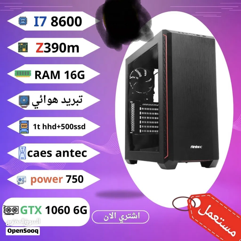 المعالج i7 9400 قابل لكسر السرعة. الكرت GIGABYTE rtx 1060. 6g supr. رامات 16 g 3400ht. البور 750 w. الالوحة z390m. السعر 1700 قابل للتفاوض