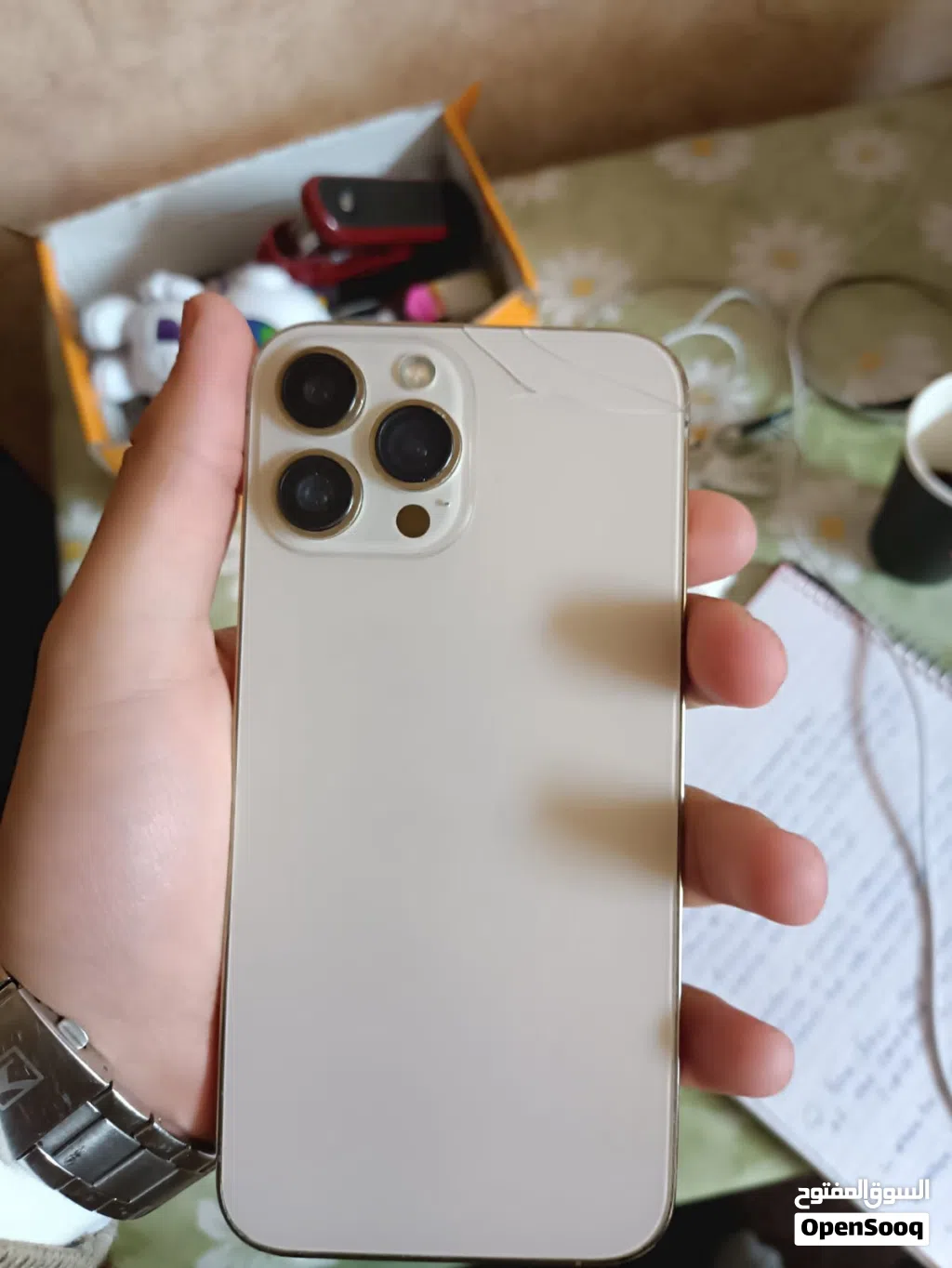 ايفون 13 برو ماكس ، مغير شاشه وبطاريه نوعيه ممتازه جدا ، وفي شعر خفيف بظهريه موضح بصوره ، بطاريه 100 , 128 جيجا